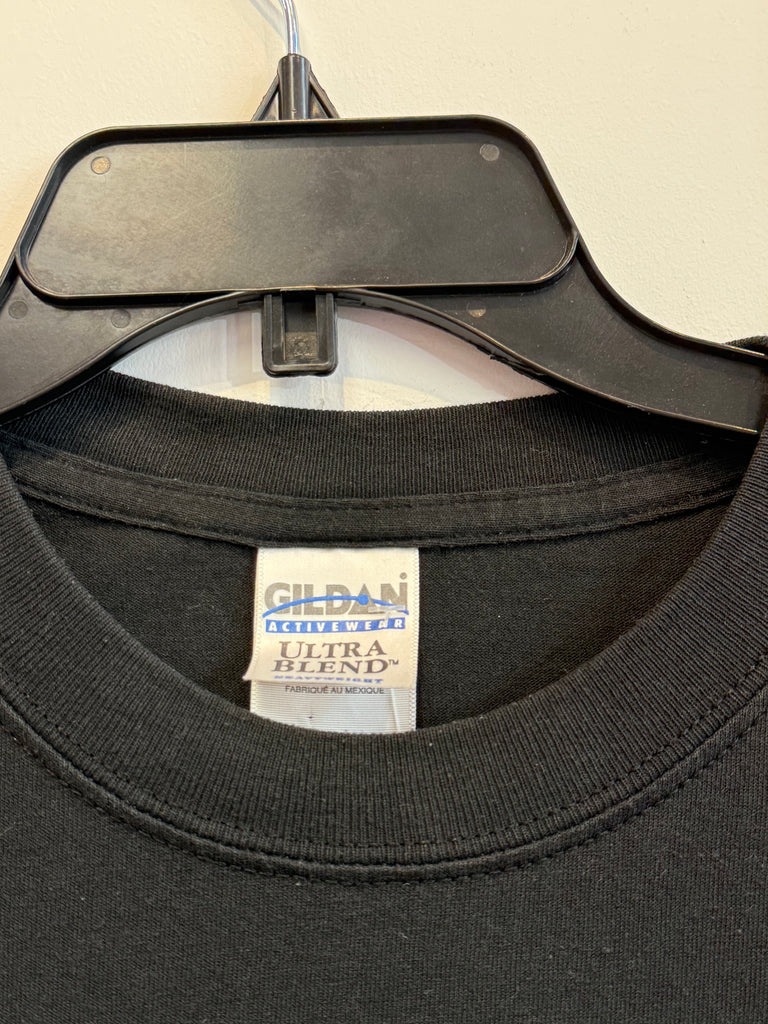This graphic has a futuristic Space like design to it. it commemorates our 2003 Basketball Championship. In gently used condition. 50/50 Cotton/Poly blend. Size Medium